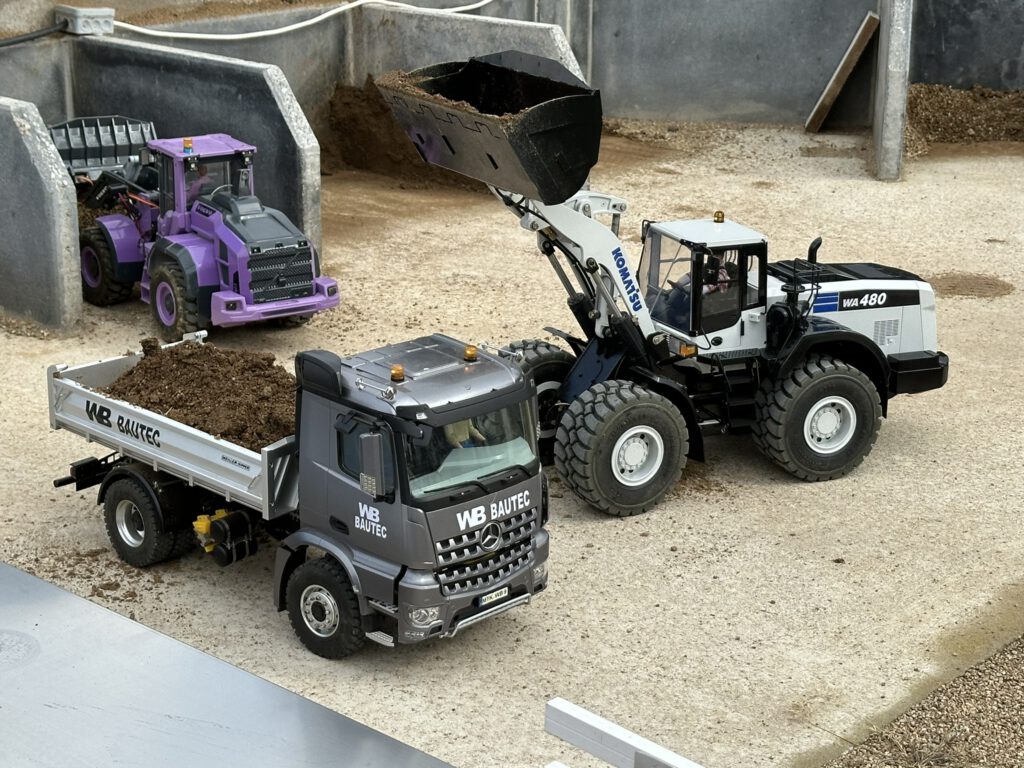 The Volvo truck belonging to WB Bautec is freshly emptied and heading downhill.