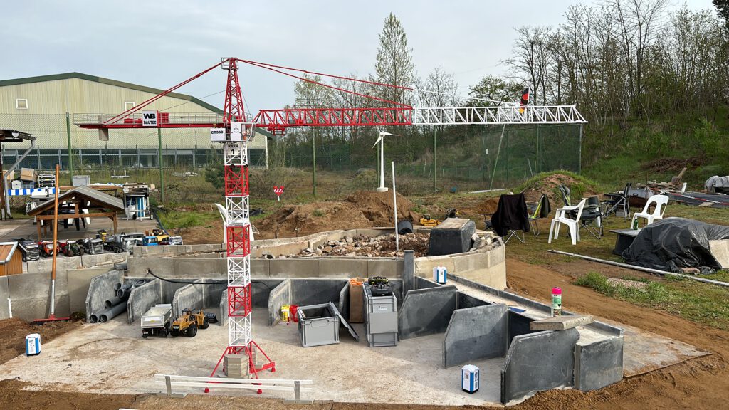 Aber damit noch nicht genug, denn mein Freund hatte für dieses Wochenende auch noch einen ferngesteuerten Baukran im Gepäck. Hier noch auf dem Patz der im Bau befindlichen Siebanlage