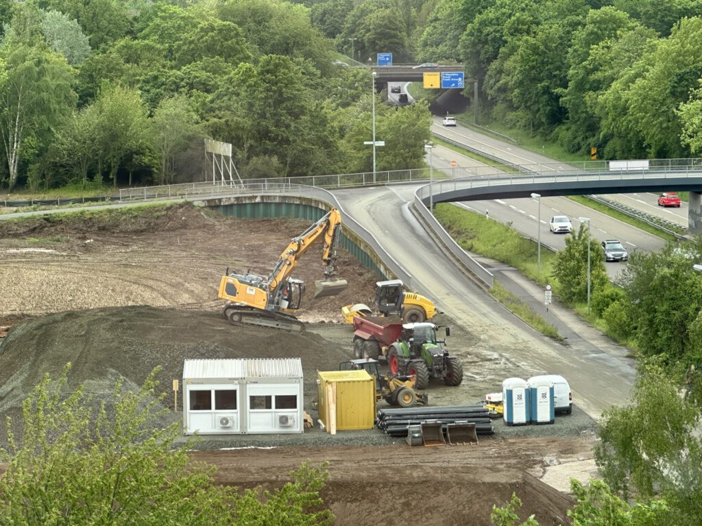 Diese Dreckhaufen ließen bei weitem noch nicht erahnen, was das mal werden wird. Hier entsteht später mal ein richtiger mobiler Bauhof auf der grünen Wiese der Regionaltangende West.